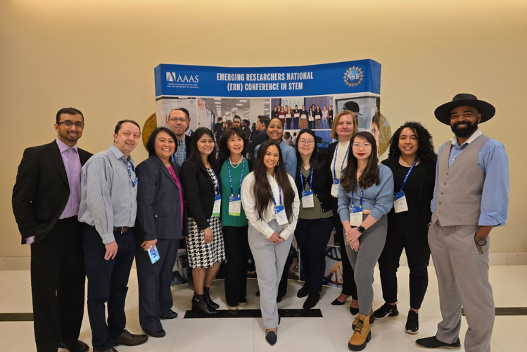 From left to right: Educators Parmanand Mohanlall, Jason Econome, Juditha Damiao, Iulian Irimina, Sharon Bottu, Martina Choi, Cherrilyn Badilla, Brooke Williams, Wendy Lin, Alexandra Chukhareva, Beverly Lam, Fernanda Martinez, and Trey Greene at the Emerging Researchers National (ERN) Conference in STEM in Washington, D.C. Photo credit: Columbia Engineering.